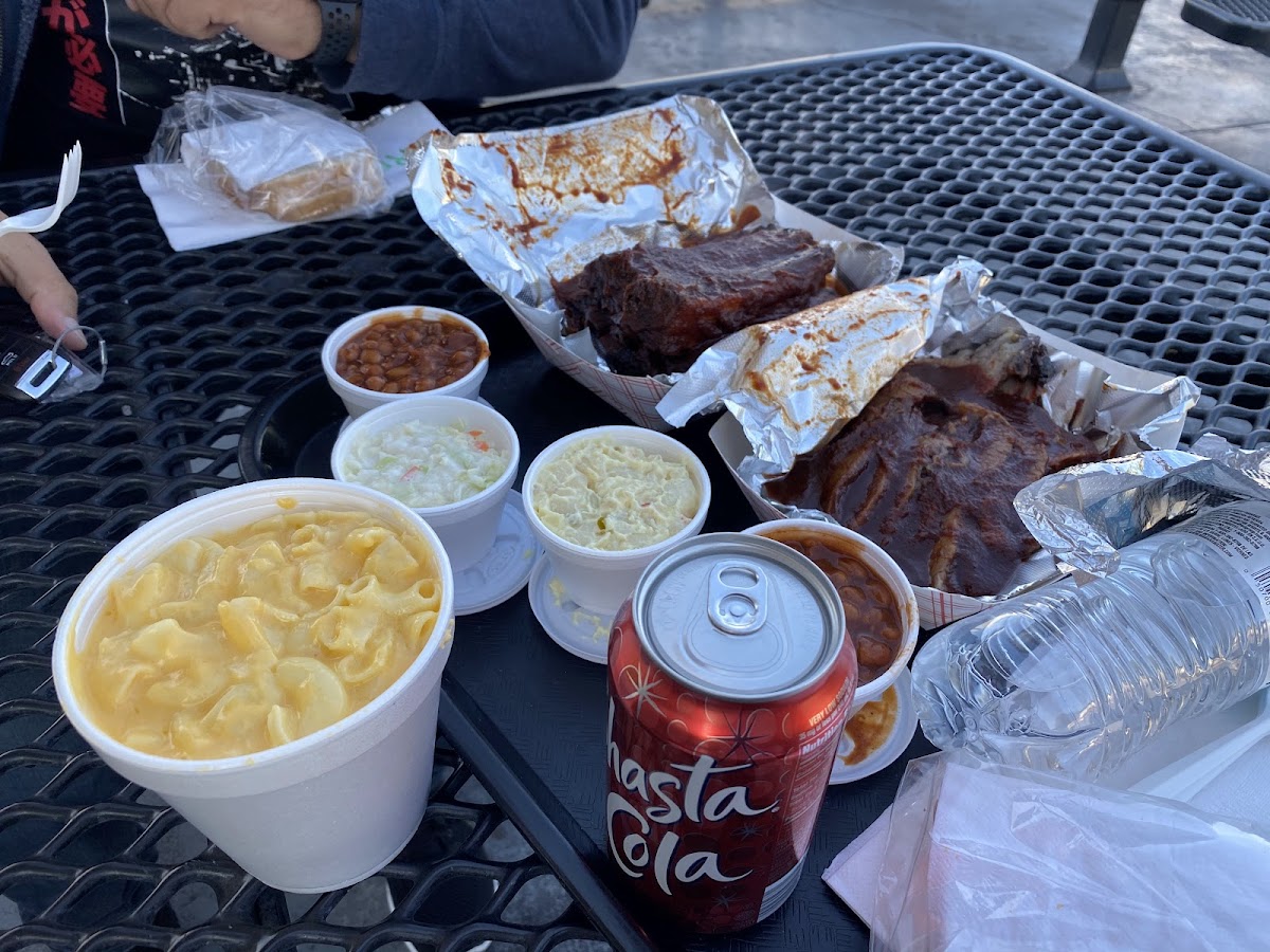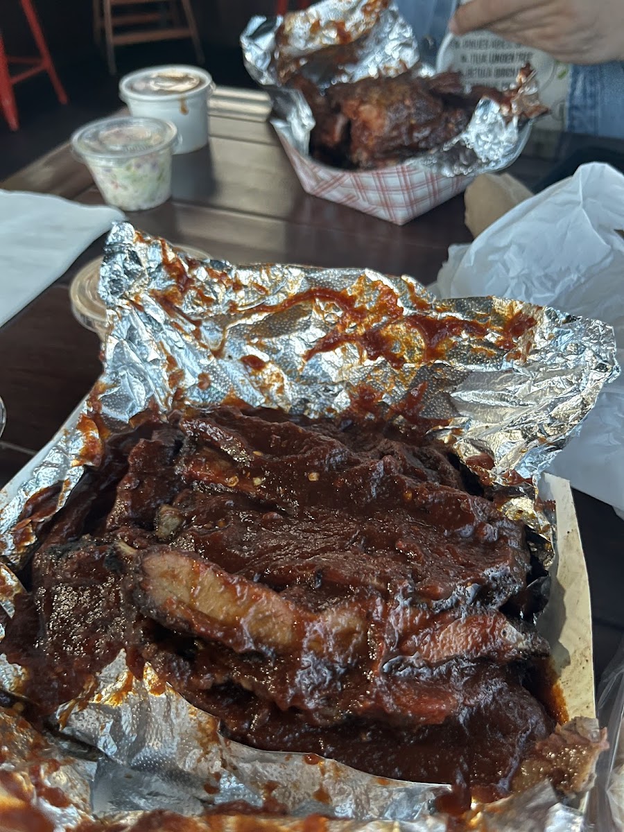 Casual, “bang for your buck” BBQ place in a very limited space. Texture ain’t the best, but still tasteful imo and very affordable for the serving size. I recommend getting the baked beans, potato salad, and peach cobbler! The staff here is consistently busy - so please be patient w/ them! The gals who took our order and called out our order were very courteous. Thank you for your hard work Will come back again for the ribs when I’m in the area :)