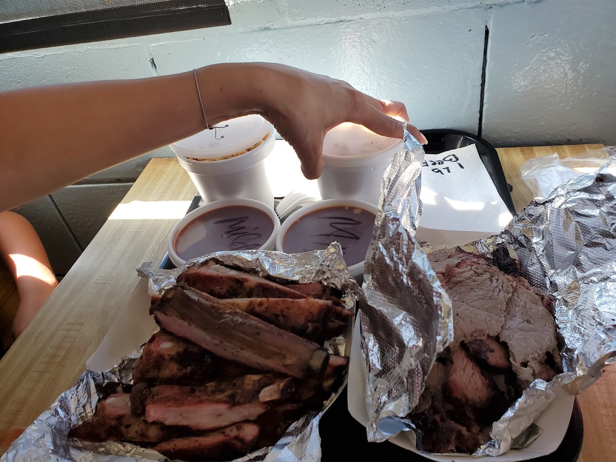 The quality of the brisket is good and the beans taste fine. I would like the brisket to have more seasoning, but I rather taste this than have the brisket be too salty. I got the mild sauce on it and I forgot it was supposed to be spicy so I look forward to trying a different sauce and the other meats the shop is offering. The lady taking orders is sweet and they use a PA system that most take out places should use. If you know what you would like I recommend calling in advance since there will most likely be lines and parking is limited.